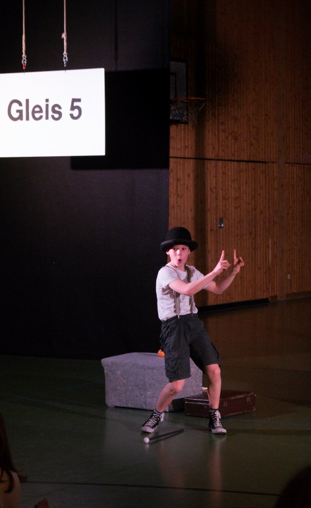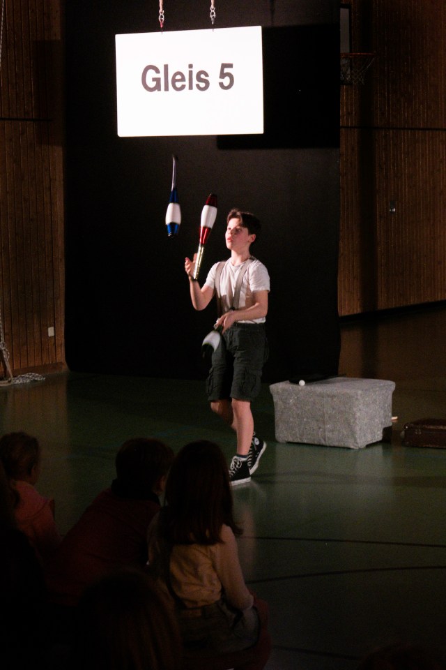 Zirkus GOYA feierte mit „Gleis 5“ Premiere! Mit großer Leichtigkeit und Spielfreude verwandelten die sechs Artist*innen die Bühne in einen Bahnsteig. Amüsiert konnten die Zuschauer beobachten, wie abwechslungsreich und heiter doch eine Wartezeit am Gleis sein kann, wenn sich die Reisenden nach und nach näher kommen. Da kann man sich nur wünschen, der nächste Zug möge doch bitte Verspätung haben!