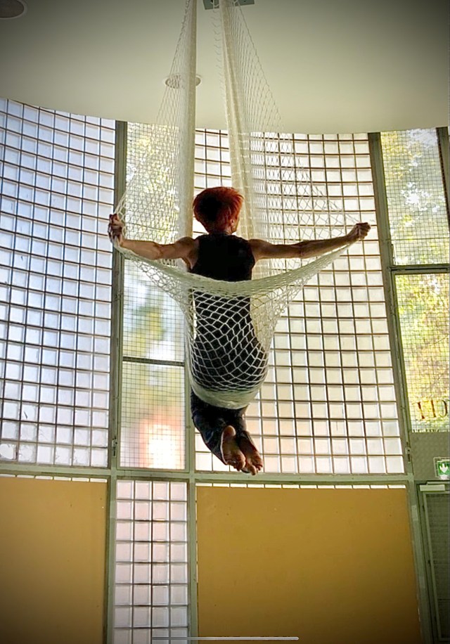 Wir haben ein neues Requisit: Unser Luftnetz ist da! Statt eines weiteren Vertikaltuchs haben sich die Federgeistchen das Netz gewünscht. Wir freuen uns nun auf viele kreative Figuren und neue Möglichkeiten der Performance!
