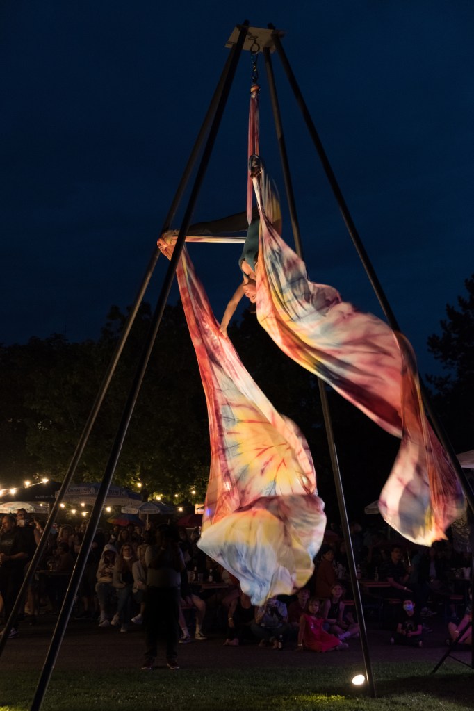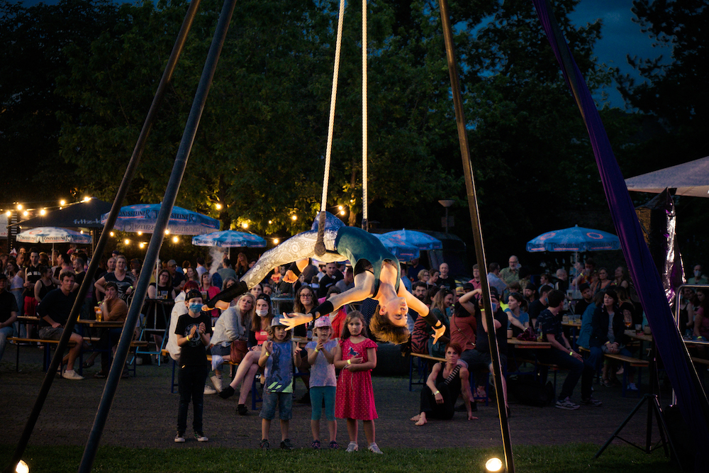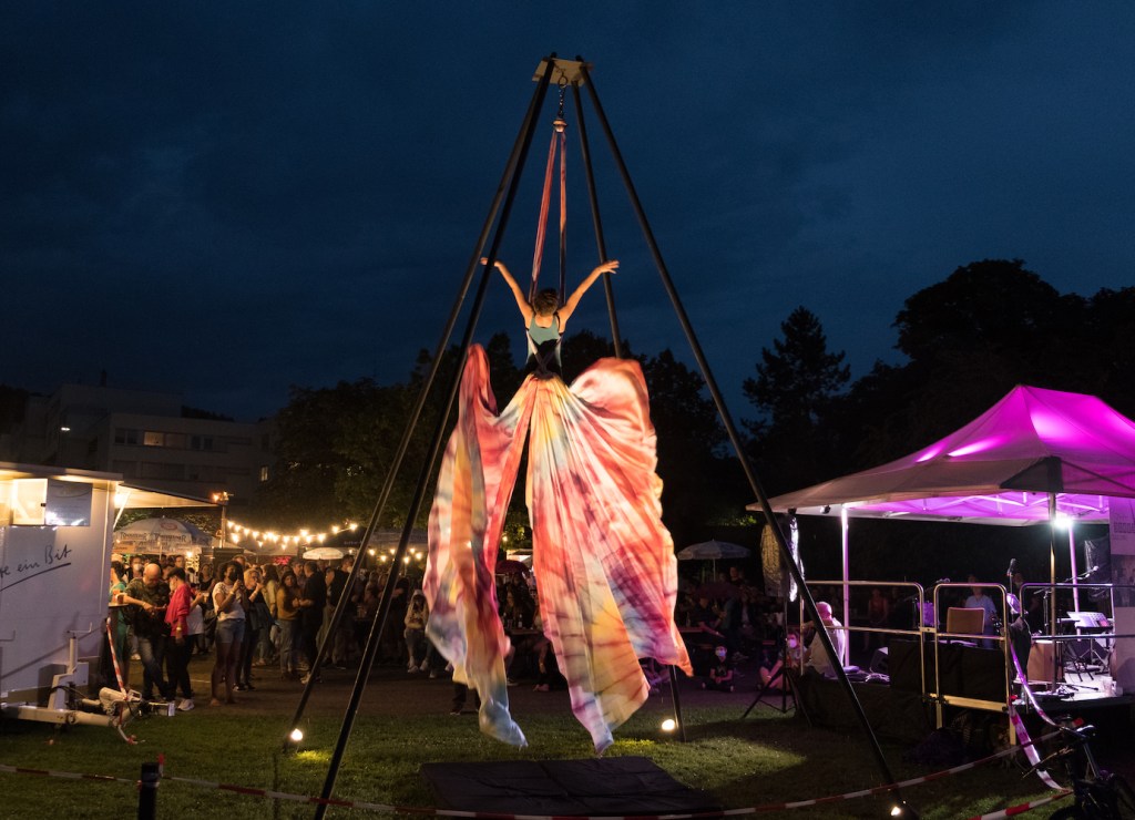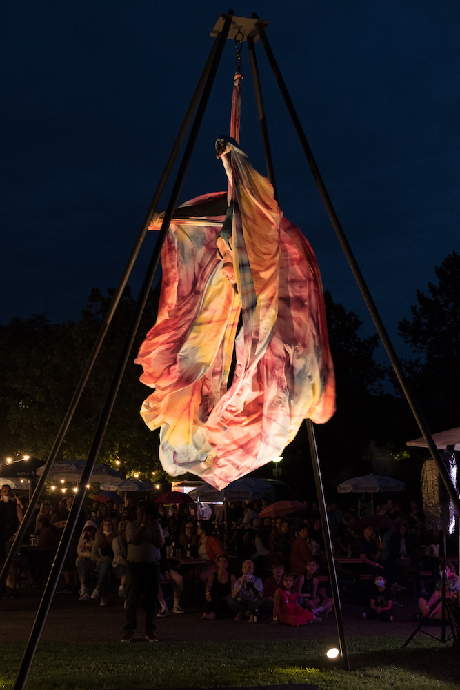 „Phoenix“ – so heißt die wunderschöne Performance, mit der Annika am Sommerfest vom SCHMIT-Z im Trierer Palastgarten gestern aufgetreten ist. Noch rechtzeitig vor dem Regen konnte sie das wunderschöne, leuchtend bunte Vertikaltuch durch die Luft flattern lassen und das Publikum verzaubern…